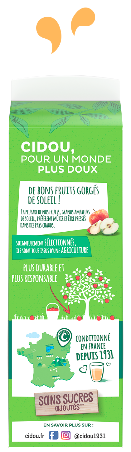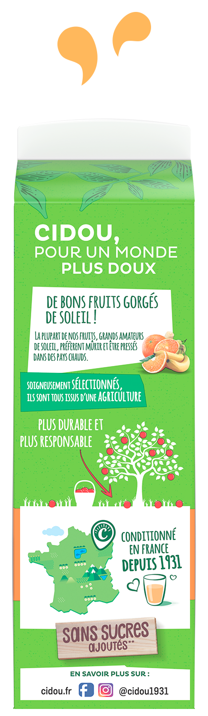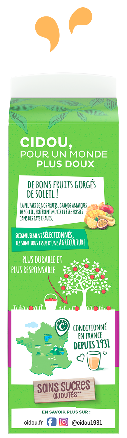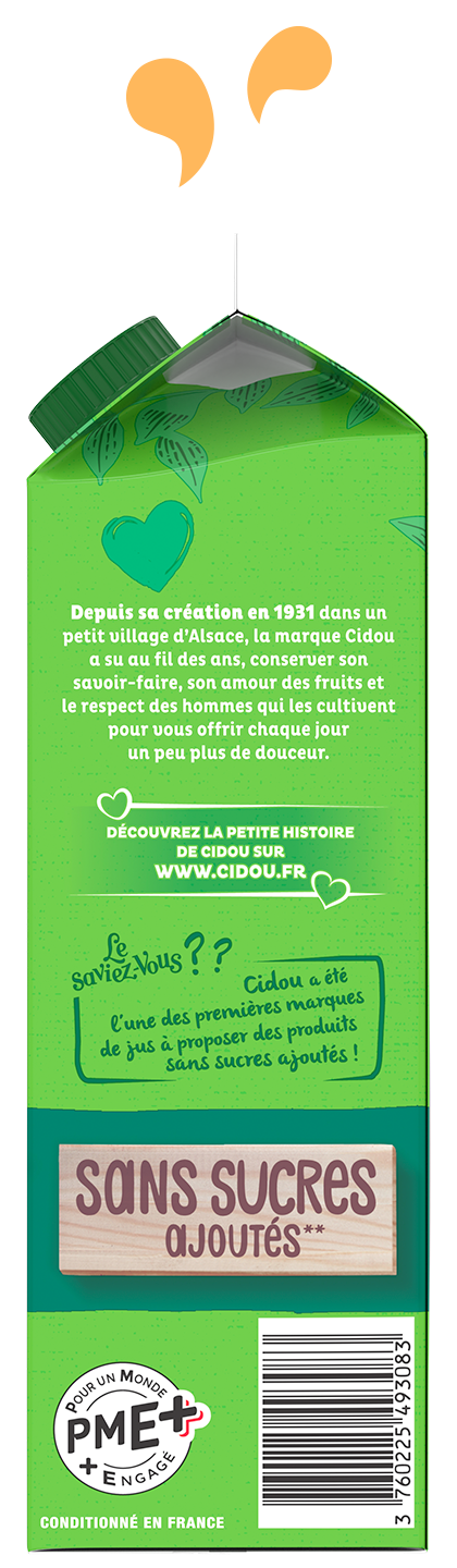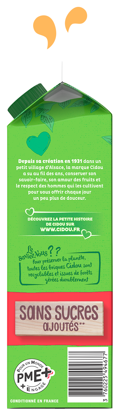 « Un Amour de Bio » est un nectar gourmand sans sucres ajoutés à forte teneur en fruits, 72% minimum. Retrouvez nos recettes originales en version 1L.