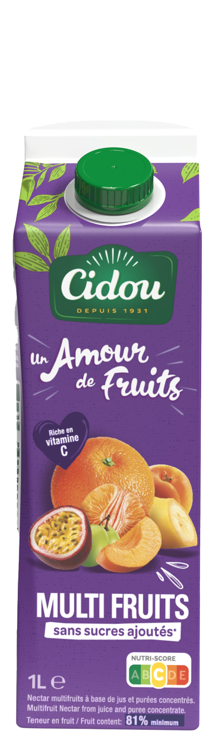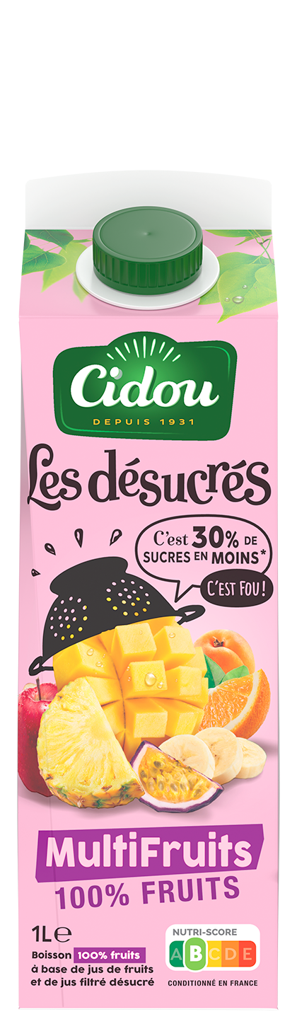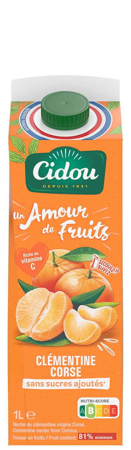 Depuis 1931, Cidou est une marque française qui propose des jus de fruits et des boissons gourmands. Au cœur de notre mission ? Révéler le meilleur des fruits et réduire les sucres lorsque c’est possible… tout cela en toute transparence. Chaque zeste compte pour adoucir le monde !